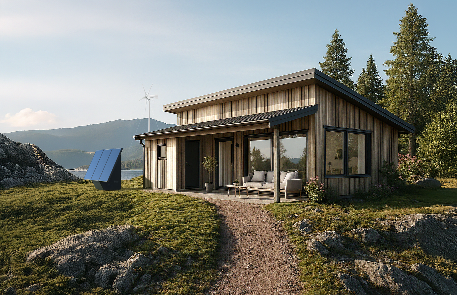 One of our main selling points is the value of putting a power station like ours on the ground outside the house/cottage, compared to mounting solar panels on the roof and installing equipment inside your home. Which comes with the possibility of fire and water damage with fatal and expensive consequences. This traditional setup also causes noise.