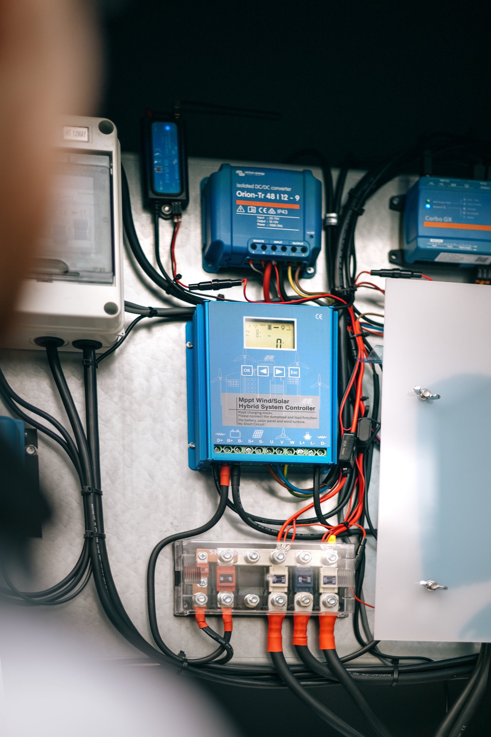 Technical components from Victron. Includes 4G antenna to connect phone and power station together.